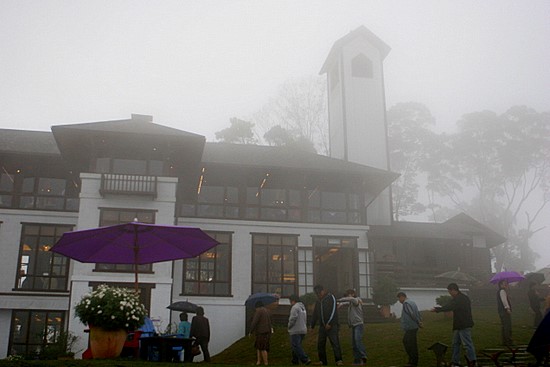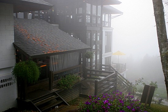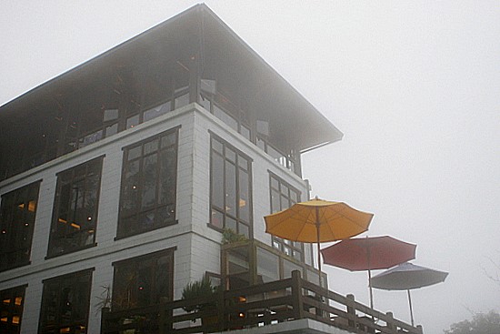 在園區裡面走了一遭,這裡是以一個大致平坦的山頭為基礎來做開發,坐在外面的椅子上真的是挺享受的,天氣好的時候在這個位置往外看可以看到山谷間的溪流,視野真的不錯,大霧中一片白濛濛也別有風味啦。