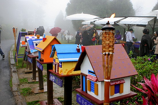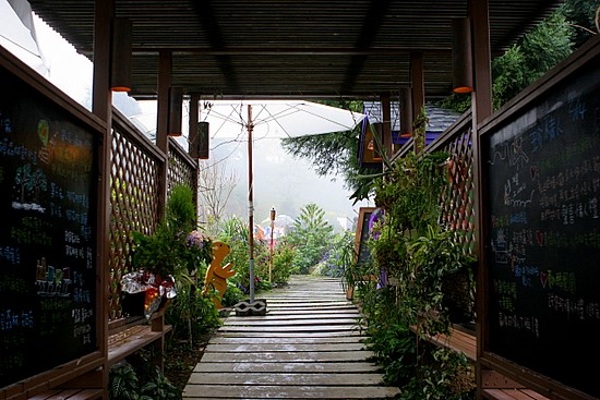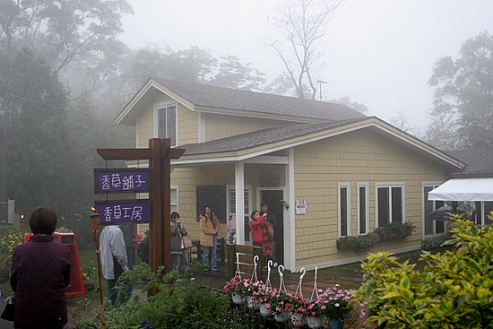走上圖中綠樹旁的樓梯就是薰衣草森林的外賣部了,最便宜的飲料要160元,差不多是城市裡面一份簡餐或是一杯咖啡的價格,相較之下並不便宜,不過,買杯飲料坐在戶外的椅子上又好像值回票價了。