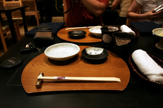日式的裝潢,入口就有兩個水池,姐夫說的沒錯門口有人在排隊,都是年輕人.服務生代我們到位子,詠盛還有姿婷就坐在旁邊...實在太巧了.他們今天去埔里玩,詠盛很得意的露出他黑金的手臂.實在太羨慕啦