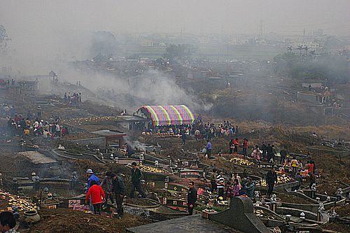 元宵節過後的週日客家人公定的掃墓日,有些人週六就來掃了也有些人上週或是再下週來掃,所以沒有顯的很擁擠,不過我還是覺得掃墓是挺麻煩的事情。下面搭了棚架的那戶,據說每年都有上百人來掃墓,光是拿香就要花好多時間吧!